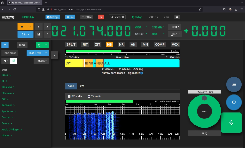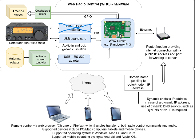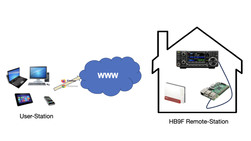 HB9F setzt für den Remotebetrieb den sehr interessanter Lösungsansatz Web Radio Control