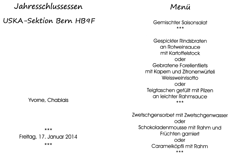 Am 17. Januar 2014 fand das traditionelle Jahresessen der Sektion Bern statt. (52 Teilnehmer)